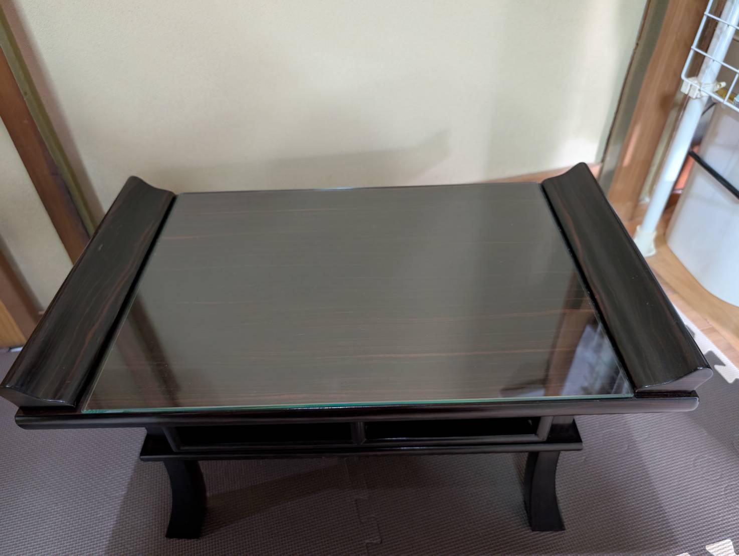 以前の硝子が3mmと薄いので、5mmへ厚くしました。経机を痛めず、清掃し易いですね。