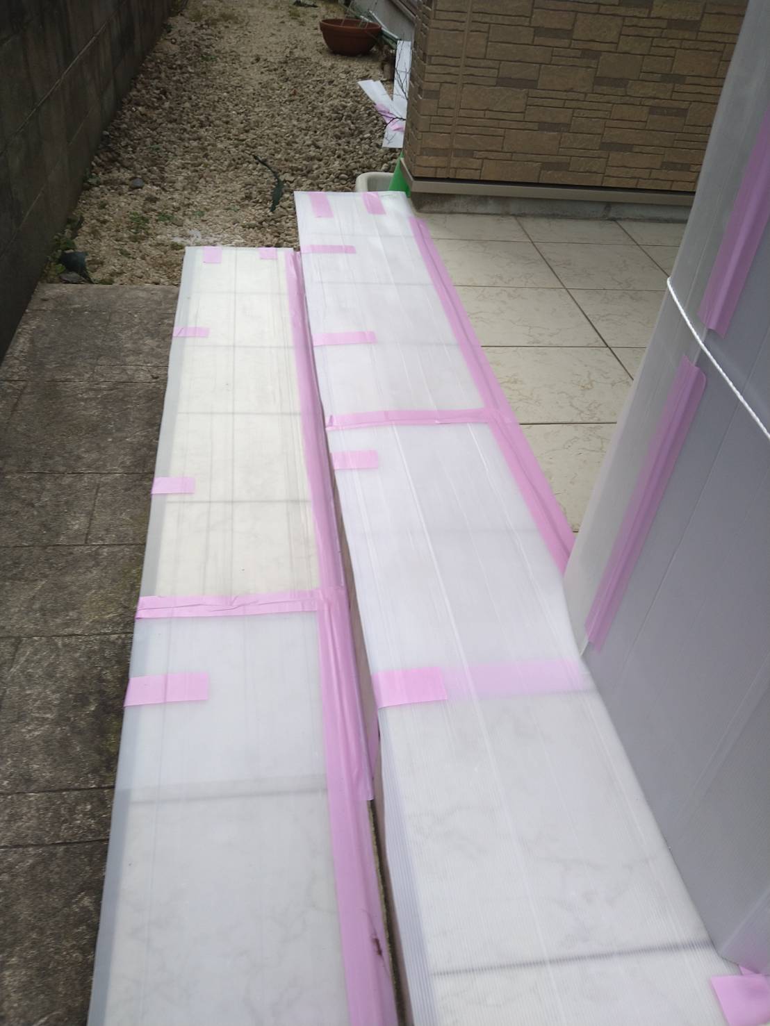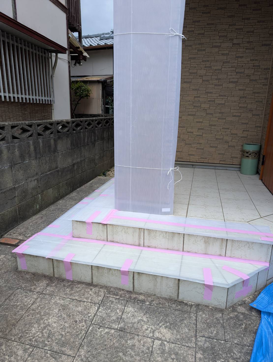 福岡市南区 システムキッチンやカップボードの取替 通路養生