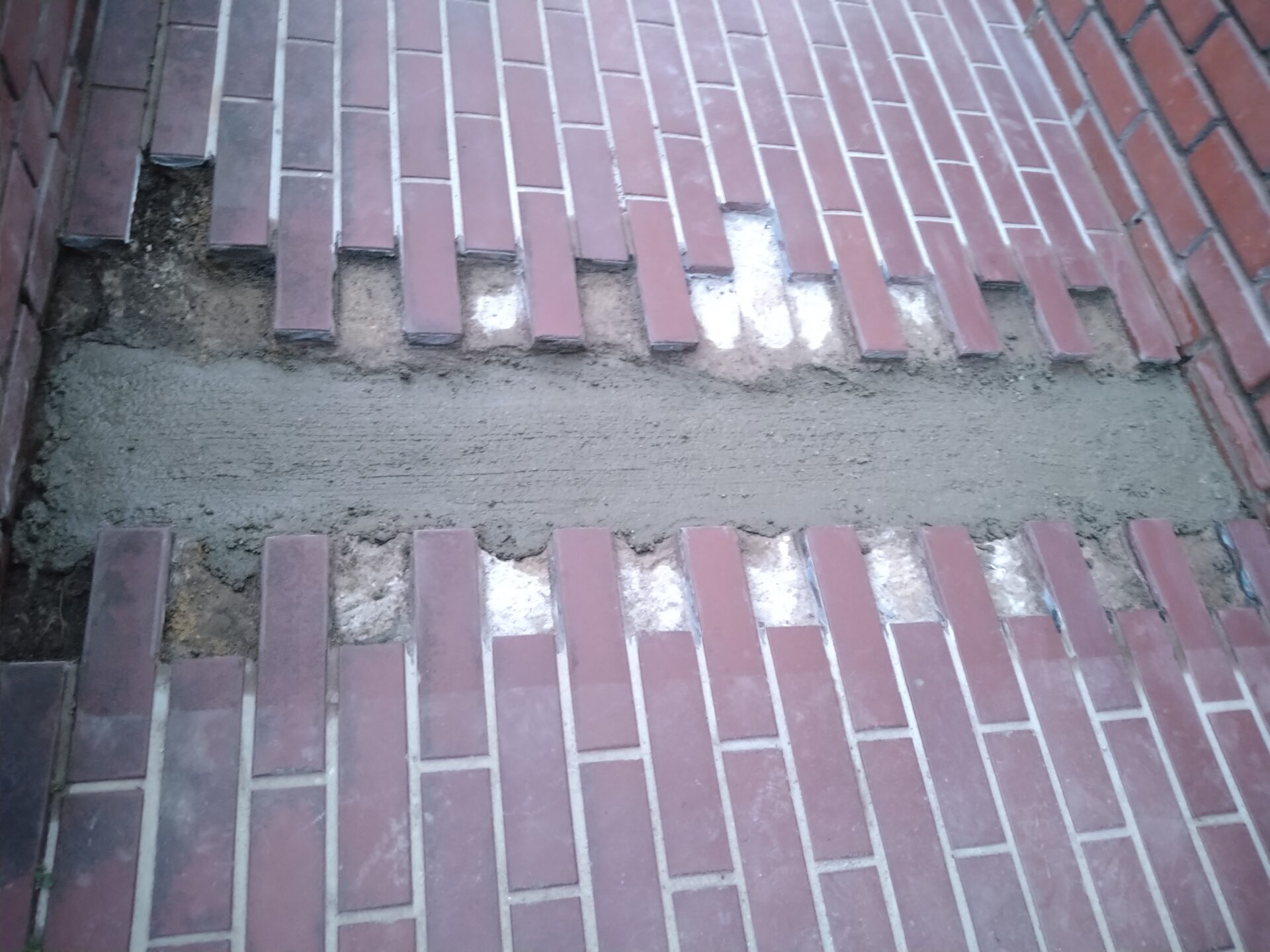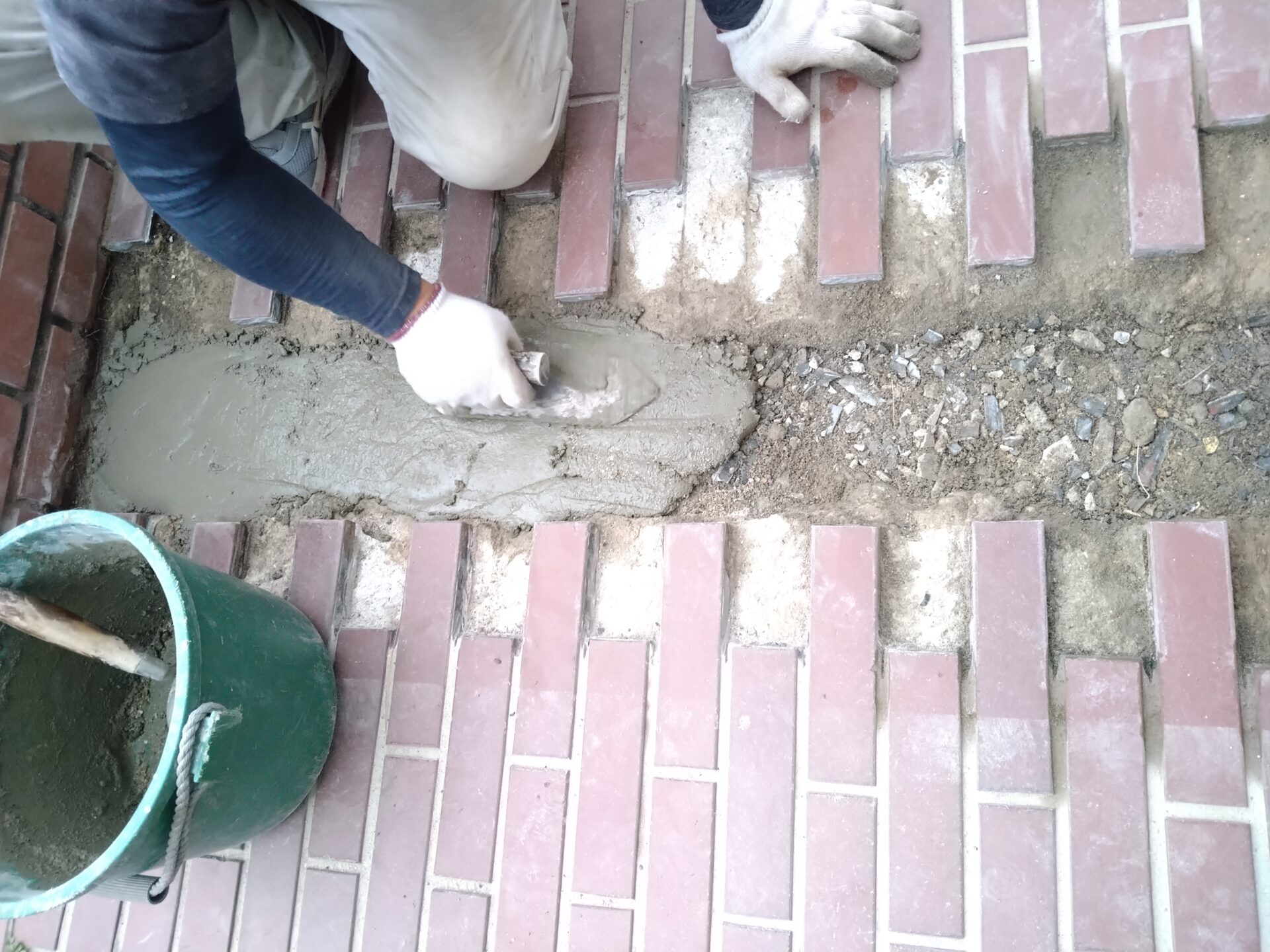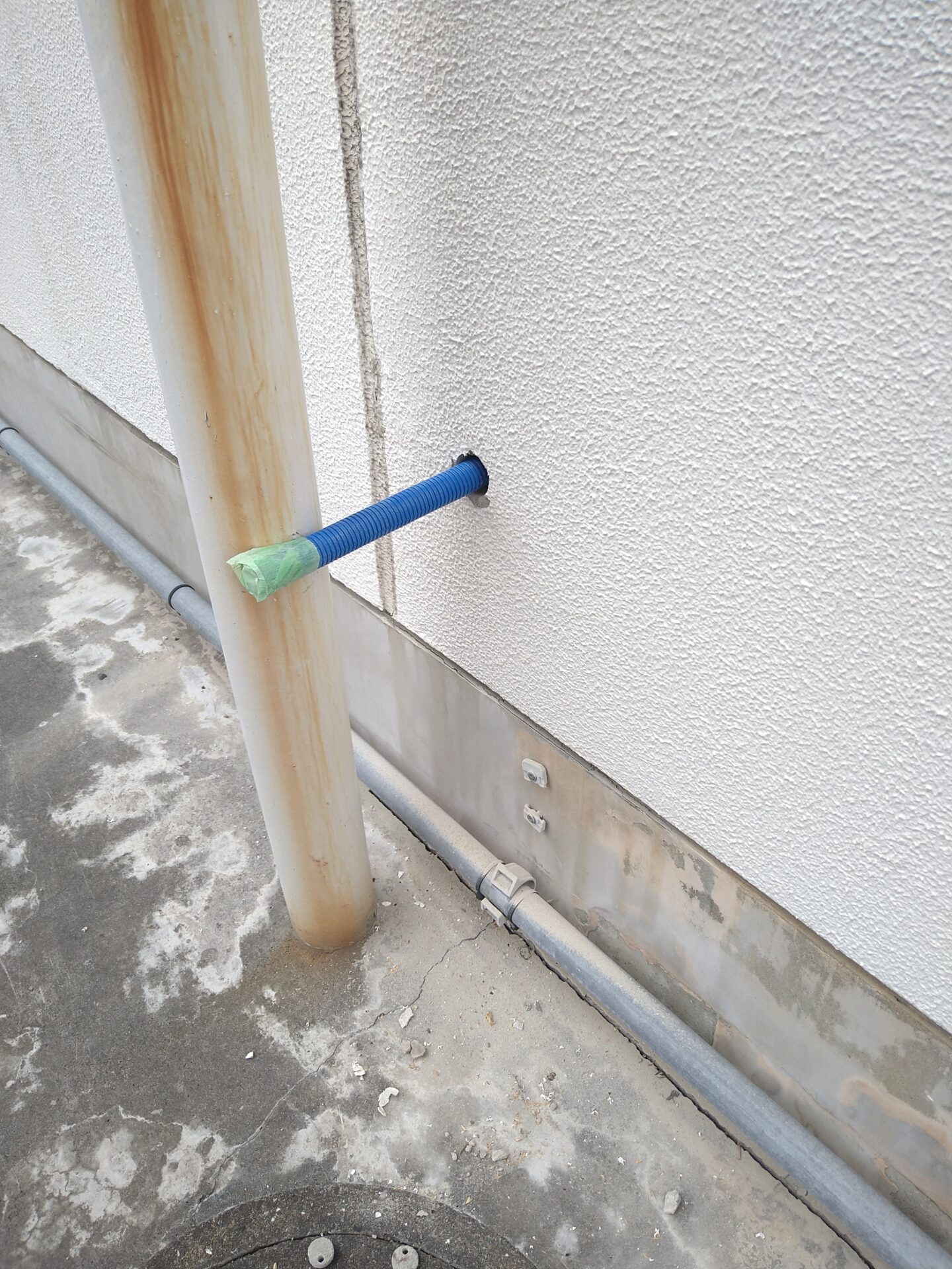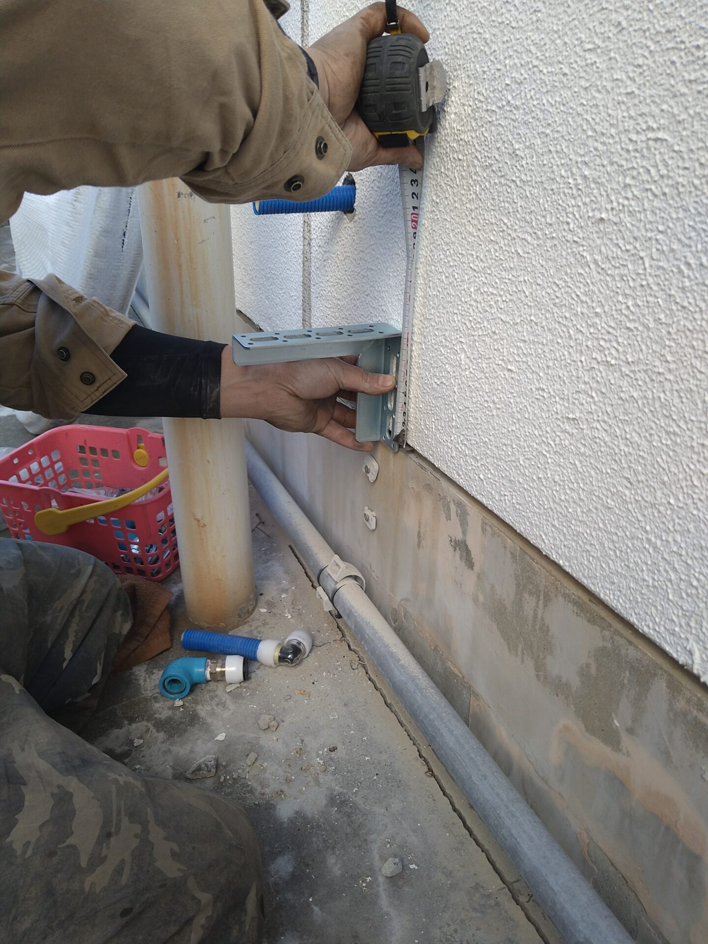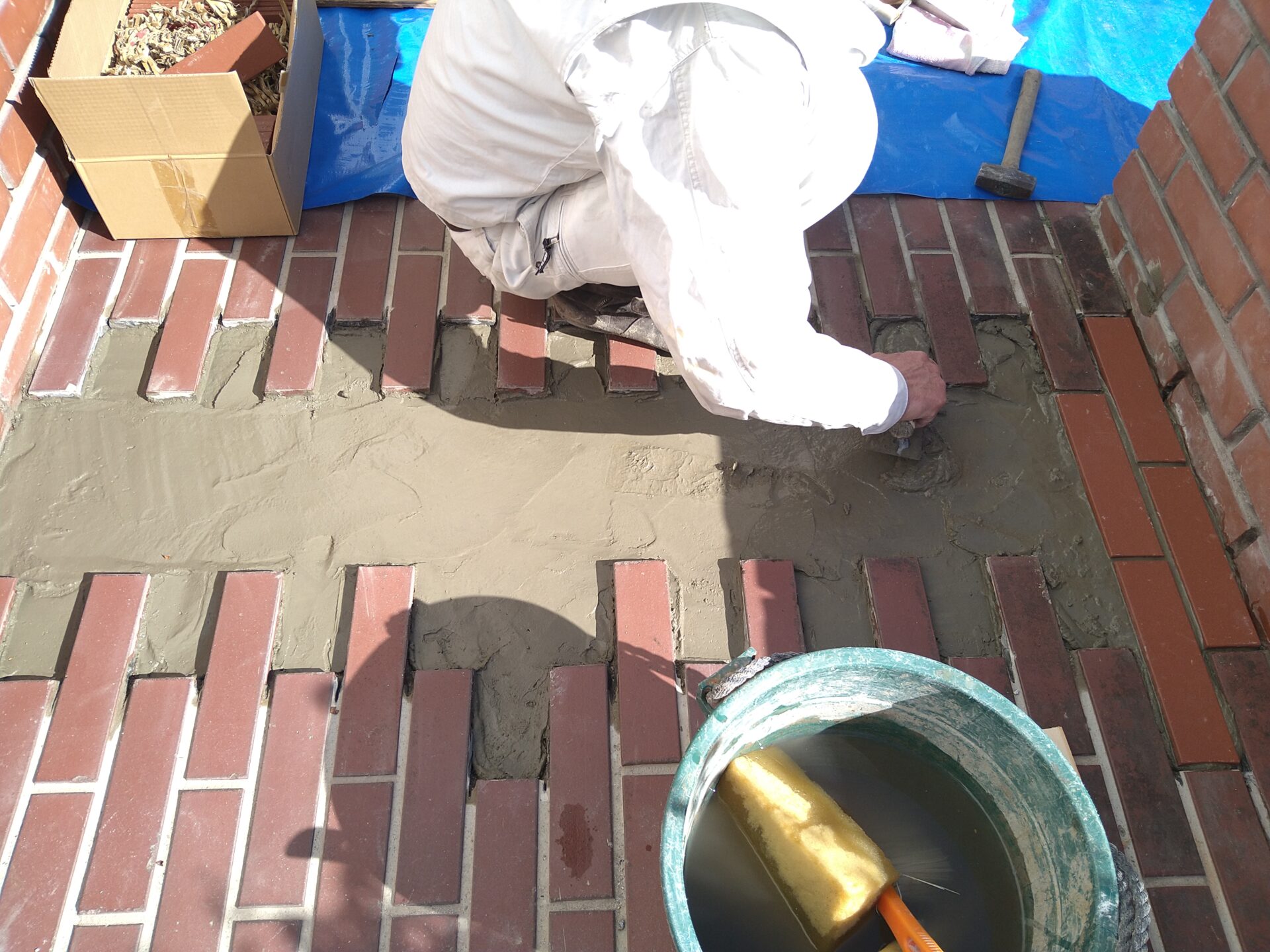 本日は、土間コンクリートやアプローチタイル補修や給水配管布設を、おこないます。
