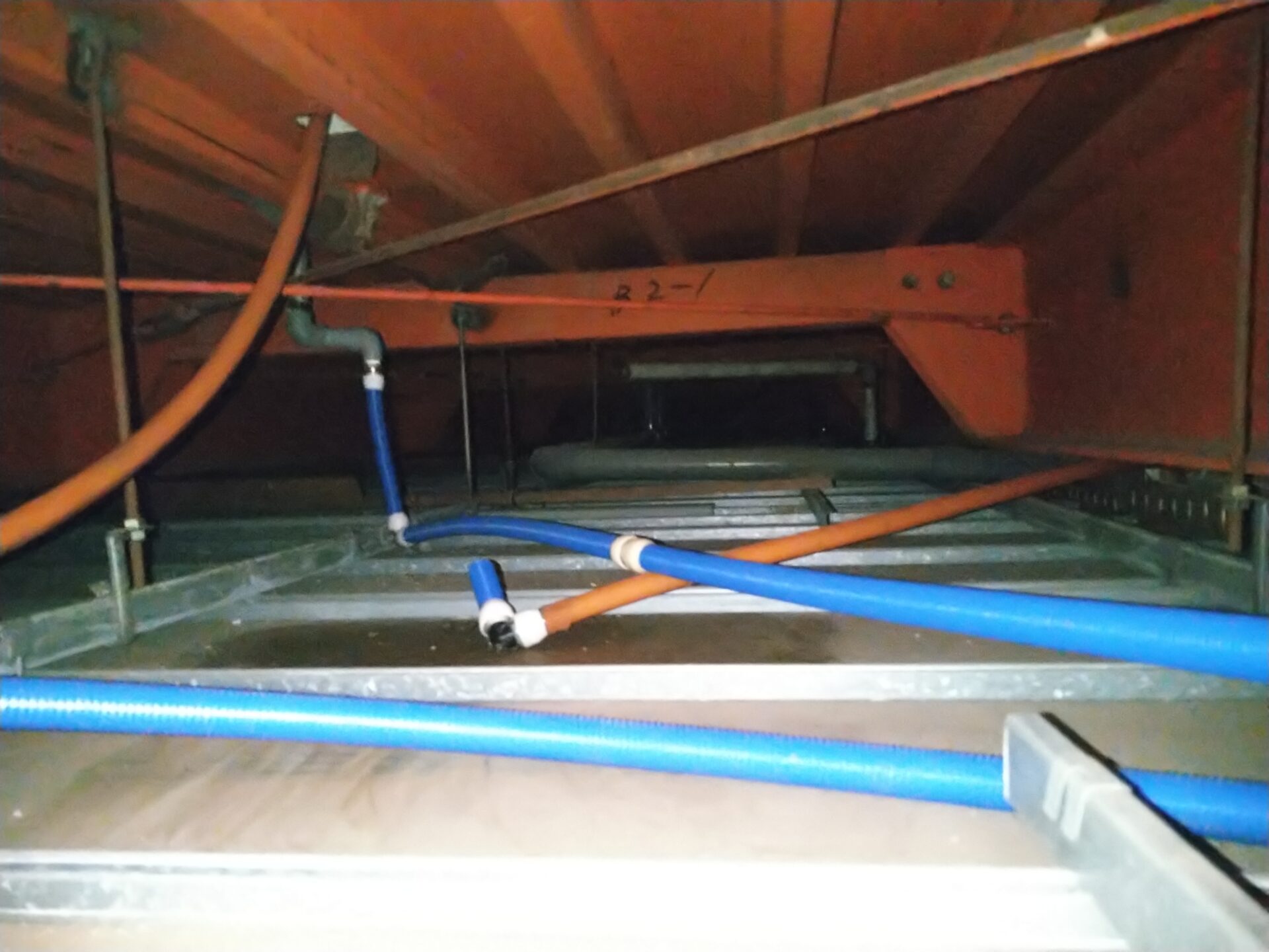 配管布設を完了しました。水圧検査も完了しました。片付け清掃も完了しました。明日は、施主様に全てを検査していただき完了となります。