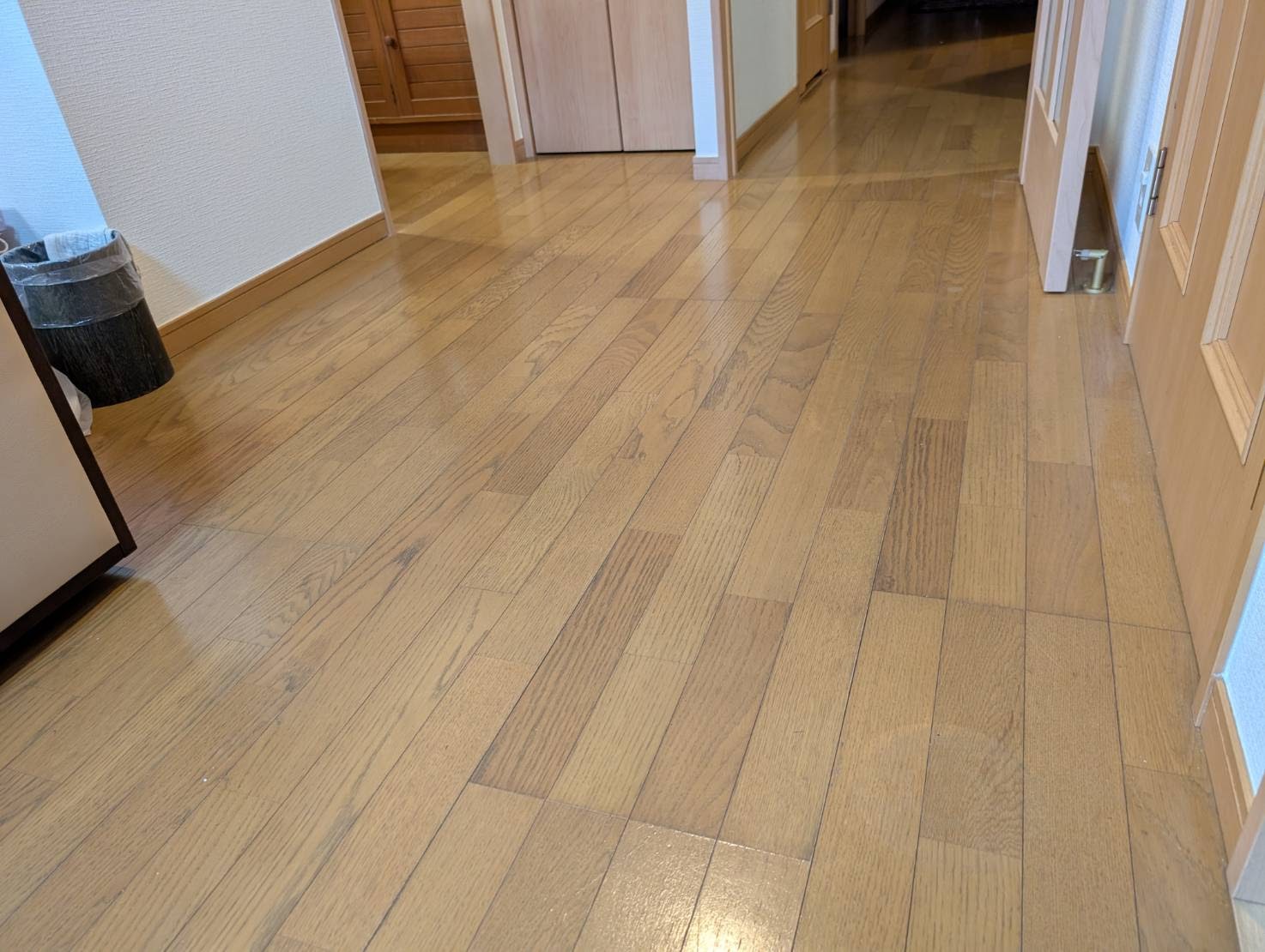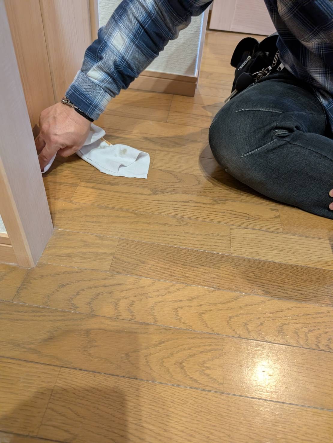 福岡市城南区 マンション上階からの漏水補修 フローリング床の補修 リペア作業